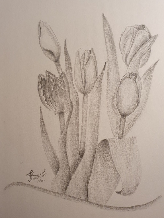 Am allerliebsten zeichne ich mit Bleistiften oder auch Graphitstiften. Ich liebe es, wenn eine Zeichnung mit jeder Bleistiftstärke gedeiht. Es ist immer wieder spannend - angefangen von der ersten dünnen Skizze bis zum fertig ausgearbeiteten Bild.